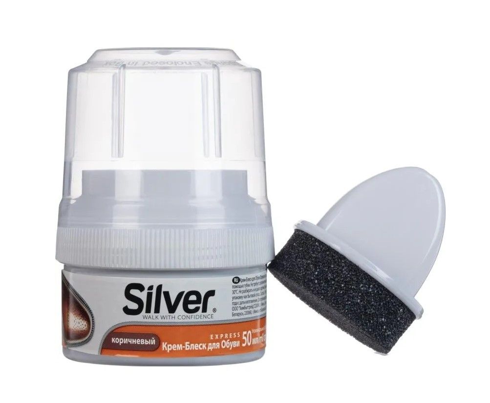Silver крем блеск для обуви коричневый банка 50 млФормула на основе натурального воска защищает, придает кожи эластичность и блеск всем видам кожаной обуви. Состав: композиция натуральных восков, пчелиный воск, деионизированная вода, смола для защиты кожи, парфюмерное масло.