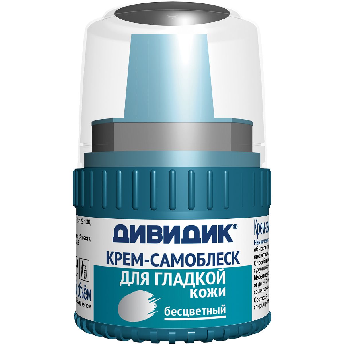 Дивидик крем для обуви самоблеск в пластиковой банке с намазком бесцветный 55 млКрем самоблеск для обуви Дивидик защищает от пыли, влаги и соли, ухаживает за обувью, обновляя ее цвет и смягчая кожу.