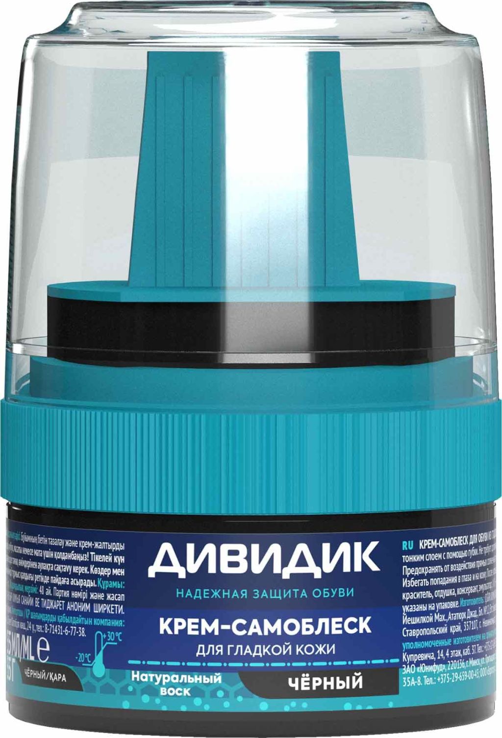 Дивидик крем для обуви самоблеск в пластиковой банке с намазком черный 55 млКрем самоблеск для обуви Дивидик защищает от пыли, влаги и соли, ухаживает за обувью, обновляя ее цвет и смягчая кожу.