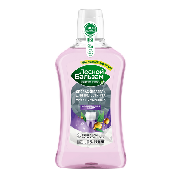 Лесной бальзам ополаскиватель для десен с маслом чайного дерева и эвкалипта 800 млЧтобы не допустить появления зубного камня и развития кариеса, рекомендуется использовать специальную жидкость для полоскания рта. Освежающий ополаскиватель для рта Лесной Бальзам – это эффективное средство для очищения зубов, укрепления десен, удаления налета и устранения неприятного запаха. Антибактериальный** ополаскиватель для полости рта обеспечивает ощущение чистоты и свежести. Ополаскиватель для рта Лесной Бальзам помогает предотвратить появление налета на зубах. ''Полоскатель'' для рта имеет обогащенный активными ингредиентами состав. Средство для ополаскивания рта содержит минералы морской соли, сок алоэ, экстракт мяты и другие компоненты. Масло чайного дерева помогает бороться с воспалительными процессами. Эвкалипт и экстракт мяты освежают дыхание. Алоэ поддерживает здоровье десен, а экстракт пихты оказывает антибактериальный эффект. Ополаскиватель Лесной Бальзам против налета содержит магний и кальций, которые обеспечивают реминерализацию зубов. Комплекс активных компонентов восстанавливает зубную эмаль. Ополаскиватель Лесной Бальзам с эффектом ''антиналет'' обеспечивает ротовой полости комплексный уход. Средство для гигиены полости рта оказывает антибактериальное действие**, удаляет налет даже в межзубных промежутках. Рекомендуется полоскать рот в течение 30 секунд не реже двух раз в день.