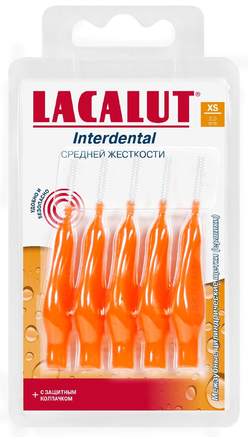 Лакалют интердентал ёршик для очищения межзубных пространств xs диаметр 2,0ммМежзубные щетки (ершики) необходимы каждому человеку для тщательной очистки межзубных пространств. Также ими можно пользоваться для лучшей гигиены при ношении ортодонтических конструкций. Цилиндрические ершики Lacalut имеют высокопрочные нейлоновые щетинки и удобную цветную ручку. В упаковке комплект из 5 штук.