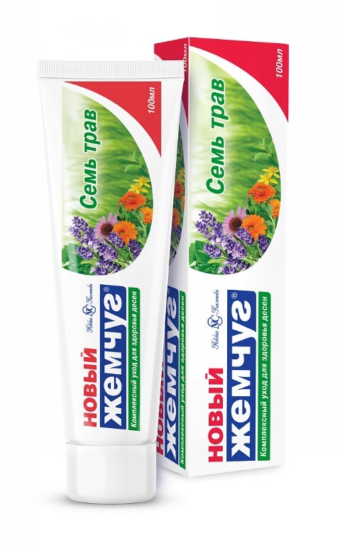 Новый Жемчуг зубная паста семь трав 100млПредназначена для ухода за полостью рта взрослых и детей от 14 лет. Зубная паста способствует профилактике кариеса и воспалительных процессов в полости рта. Содержит комплекс экстрактов семи лекарственных трав: эхинацеи, мяты перечной, крапивы, зверобоя, календулы, шалфея и ромашки, которые обеспечивают кровоостанавливающий эффект и обладают противовоспалительным действием. Освежает полость рта. Система пирофосфатов препятствует образованию зубного камня, устраняет налет. Монофторфосфат натрия укрепляет твердые ткани полости рта, восполняет дефицит кальция.