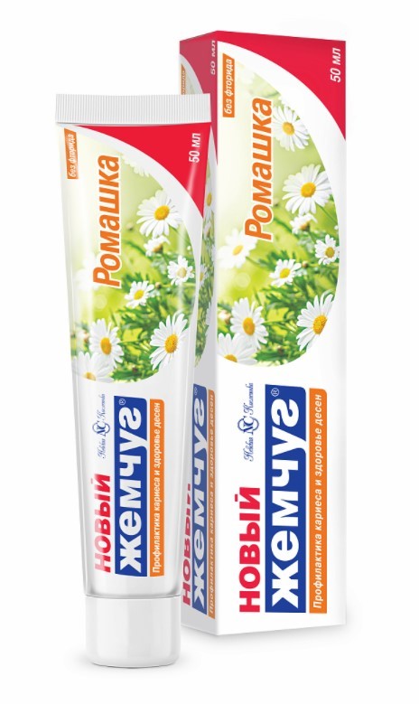 Новый Жемчуг зубная паста ромашка 50млПредназначена для ухода за полостью рта взрослых и детей от 14 лет. Зубная паста мягко и эффективно удаляет зубной налет, предупреждает развитие кариеса, помогает укрепить десны. Обладает антисептическим, противовоспалительным и заживляющим действием. При регулярном использовании снижает чувствительность эмали. Обладает свежим мягким ароматом мяты.