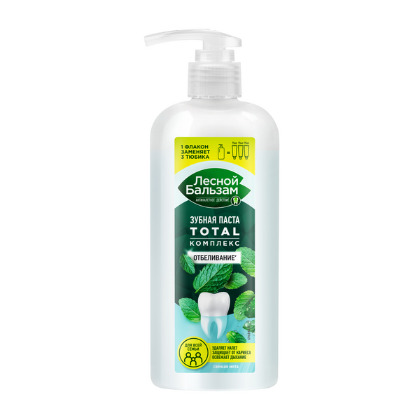 Лесной бальзам зубная паста total комплекс отбеливание свежая мята для всей семьи 290 мл помпа