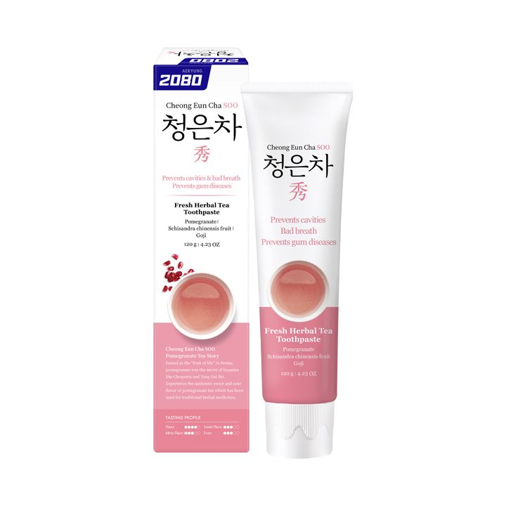 Экстракты чаев из граната, ягод годжи и китайского лимонника оказывают оздоравливающее, антисептическое, тонизирующее и питательное действие на десны. Умеренная пена очищает поверхность зубов и ухаживает за полостью рта в целом.