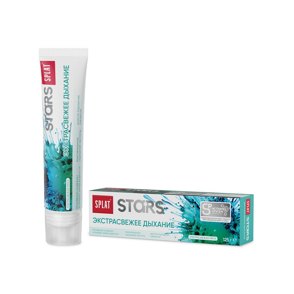 Splat stars зубная паста экстрасвежее дыхание 125 гМгновенно освежает и придает заряд бодрости, максимальное ощущение чистоты, долгое ощущение свежести