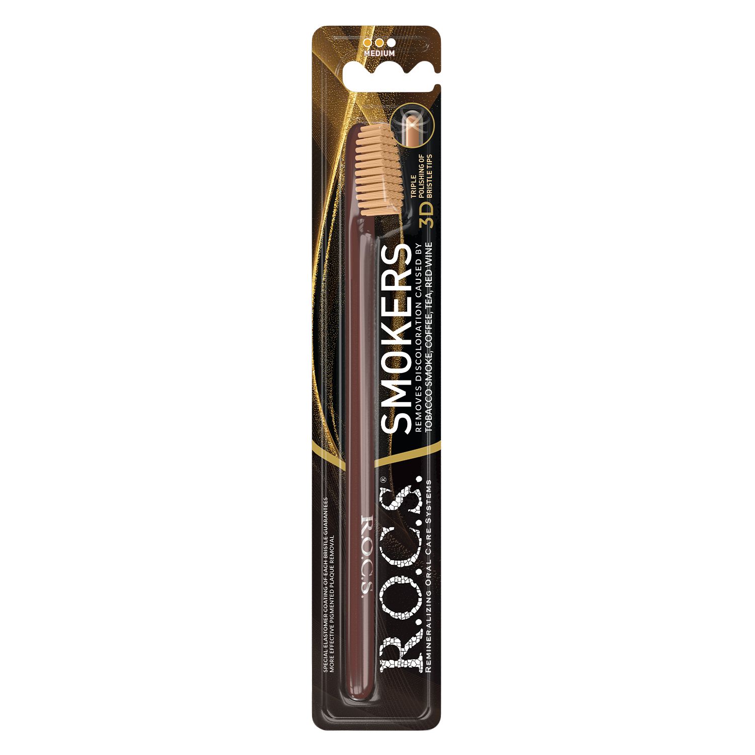 ROCS зубная щётка smokers средняяВеликолепные очищающие характеристики щётки обеспечиваются особой двухкомпонентной структурой щетины.