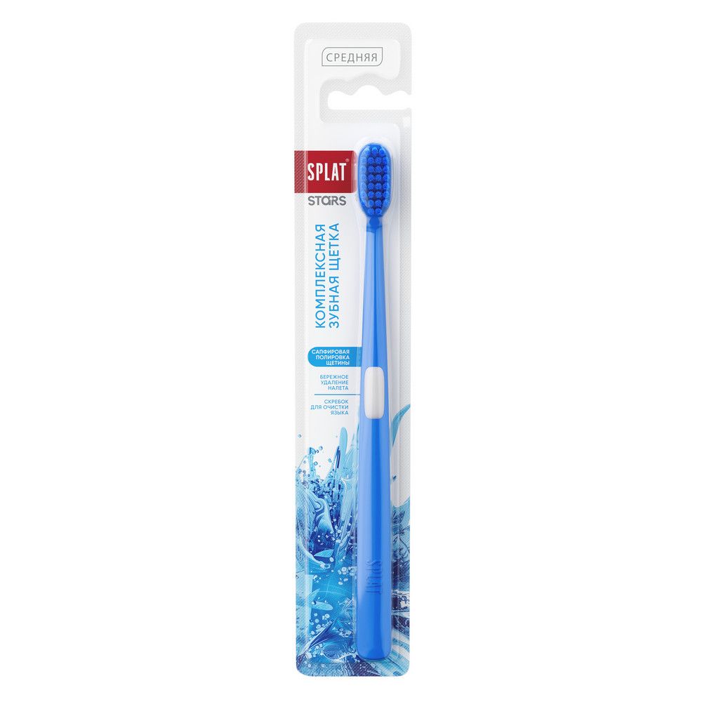 Splat stars зубная щётка средняяЭргономичная форма ручки с поддержкой под большой палец для правильного положения зубной щетки