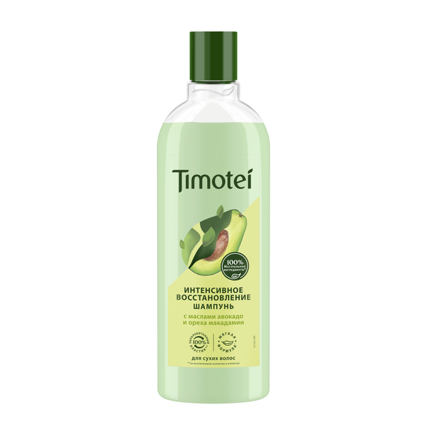 Timotei шампунь для волос интенсивное восстановление 400 млСухие и потерявшие жизненную энергию волосы нуждаются в уходе, который бы вернул им ухоженный вид и восстановил здоровый блеск. Ежедневная укладка и использование плойки и фена только усугубляет ситуацию. Если времени и возможностей на спа-процедуры и многоэтапные уходы нет, – воспользуйтесь шампунем от Timotei из серии Интенсивное Восстановление. Формула шампуня содержит 100% натуральные ингредиенты*. Состав, обогащенный натуральными маслами авокадо и ореха макадамии, помогает восстановить сухую и поврежденную поверхность волос, придать вашим локонам ухоженный вид и шелковистость, наполнить волосы жизненной энергией. Шампунь Интенсивное Восстановление подходит даже для поврежденных, безжизненных волос, поскольку обеспечивает должное питание и увлажнение, возвращая волосам жизненную силу и естественный блеск, придает сияющий здоровый вид. Нежный и приятный аромат продукта подарит истинное наслаждение. Формула шампуня подходит для ежедневного применения, не пересушивает волосы.